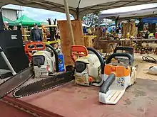 Tools of the trade at a chainsaw carving demonstration and competition held in Ocean Shores, Washington