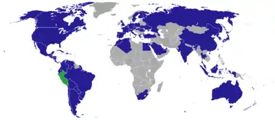 This is a list of diplomatic missions in Peru. There are currently 61 embassies in Lima, and many countries maintain consulates in other Peruvian cities (not including honorary consulates).