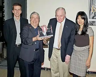 Ashbery received the Discovery Prize on April 3, 1952, as the winner of what was then called the Poetry Center Introductions contest.[8] He shared the award with Harvey Shapiro and Gray Burr.[9] The contest that year had hundreds of competing applicants and was judged by John Malcolm Brinnin, Kimon Friar, and Richard Wilbur.[8] It was Ashbery's first literary award.[10] He gave a reading of sixteen poems at the award ceremony—his first since graduating college.[8] When asked to judge the Discovery Prize competition in 2014, he replied, "I'll have to say yes, since the contest was the beginning of my poetry career, a mere 52 years ago."[7]