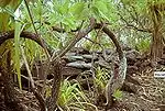 Flora, the most distinguishing feature of each islet, varies as a function of both islet size and prior human habitation. Larger islets support inward zones of shrub, primarily Tournefortia argentea, and the largest possess a central forested region usually dominated by groves of Pisonia grandis trees. Artifacts, including wells, homesites, and marae, on several islets, speak to prior human habitation, as do stands of non-indigenous Cocos palms; however, many islets have little or no evidence of human influence, despite past disturbance.