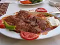 Bahçıvan kebabı[45] Boneless lamb shoulder mixed with chopped onions and tomato paste