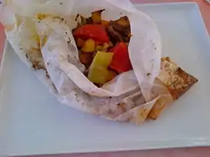 Kağıt kebabı Lamb (or veal) cooked in a paper wrapping[48]