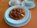 Patates kebabı[49] Beef or chicken mixed with potatoes, onions, tomato sauce and bay leaves