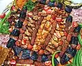 Souvlaki Skewers consisting of pork, chicken or lamb that is barbecued.[5][19] Pictured is a souvlaki platter.