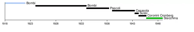 | 1 | Giorgio Bombi | 1926 | 1934 | National Fascist Party | |||