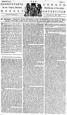 - The Pennsylvania Ledger, Or, The Philadelphia Market-Day Advertiser. S.W., Dec. 3, 1777-May 23, 1778.[2]