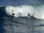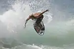 Bodysurfing is the art and sport of riding a wave without the assistance of any buoyant device such as a surfboard or bodyboard. Bodysurfers typically equip themselves only with a pair of specialized swimfins that stay on during turbulent conditions and optimize propulsion.