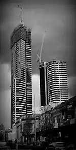 Altitude Towers under construction in 2016. The west tower of the complex is now the tallest building in Parramatta
