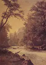 ![]() | Mountain and River Scene | 1864 | Oil on canvas | 35.6 cm × 50.8 cm (14.0 in × 20.0 in) | Gilcrease Museum, Tulsa, OK IAP 82980145 |