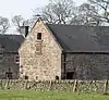 17th century | The barn is in stone, and has a tile roof with verge parapets on corbelled kneelers. There are two levels, consisting of a hay loft over a byre. On the west front are two doorways with heavy lintels, and four windows, some of which are blocked.[15] | II |