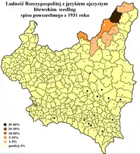 During the Interwar period of the 20th century (1920–1939) Lithuanian-Polish relations were characterised by mutual enmity. Starting with the conflict over the city of Vilnius, and the Polish-Lithuanian War shortly after the First World War, both governments - in an era when nationalism was sweeping through Europe - treated their respective minorities harshly.[2][3] When Poland annexed the town of Sejny and its surroundings back in 1919, repressions towards the local Lithuanian population started, including the Lithuanian language being banned in public, Lithuanian organizations (with 1300 members), schools (with approx. 300 pupils) and press being closed, as well as the confiscation of property and even burning of Lithuanian books.[4] Beginning in 1920, after the staged mutiny of Lucjan Żeligowski, Lithuanian cultural activities in Polish controlled territories were limited; newspapers were closed down and editors arrested.[5] One editor - Mykolas Biržiška - was accused of treason in 1922 and received the death penalty; only direct intervention by the League of Nations spared him this fate.[6] He was one of 32 Lithuanian and Belarusian cultural activists formally expelled from Vilnius on September 20, 1922 and given to the Lithuanian army.[5] When 48 Polish schools were closed in Lithuania in 1927, Józef Piłsudski retaliated by closing many Lithuanian educational establishments in Poland.[7] In the same year 48 Lithuanian schools were closed and 11 Lithuanian activist were deported.[2] In 1931 there were about 80,000 Lithuanians in Poland, the majority of them (66,300) in Wilno Voivodeship.[8] Following Piłsudski's death in 1935, further Polonisation ensued as the government encouraged the settlement of Polish army veterans in disputed regions.[9] About 400 Lithuanian reading rooms and libraries were closed in Poland in 1936-1938.[3]