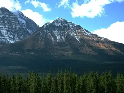 Little Temple is a 2,653-metre (8,704-foot) mountain summit located in Banff National Park of the Canadian Rockies of Alberta, Canada. Little Temple is situated in the Bow River Valley between Paradise Creek and Moraine Creek, 6.0 km (3.7 mi) south of Lake Louise, Alberta. The mountain can be seen from the Icefields Parkway along with its nearest higher peak, Mount Temple, 1.07 km (0.66 mi) to the southwest.[1]