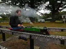 It is technically possible to build even smaller operating steam engines. Hand-made examples, as small as Z scale (1:220), with a gauge of only 6.5 mm (0.256 in), have been produced.[2] These are fired with a butane flame from a burner in the engine's tender. AA Sherwood of Australia, an engineering lecturer, produced some miniature scale model live steam engines in the late 1960s and early 1970s. His smallest live steam engines were 1:240 scale which is smaller than the 1:220 of Z Scale.[3] The smallest scale Sherwood worked in was 1:480, though that was not live steam.