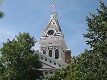 The current Livingston County Courthouse is the third building to carry that name. Construction on the present-day courthouse began in late 1874 and was completed late the next year. The courthouse was built after fire consumed the second Livingston County Courthouse on July 4, 1874. The plan for the courthouse was selected from a slate of ten candidate plans.[1] The County Board of Supervisors noted at the time that the selected plan "cost more money (but) it was the only one which for size, fire-proof qualities, and solidity would answer the purpose, and was indeed, in the matter of taste and elegance, much in advance of any other."[1] However, the author of the 1915 The County Archives of the State of Illinois called the building "hardly fireproof".[2] The courthouse clock tower was installed in 1892.[1] It served as the county's primary judicial center until late 2011, when a replacement Law and Justice Center opened across the street, but officials announced plans to preserve the older building.[3]