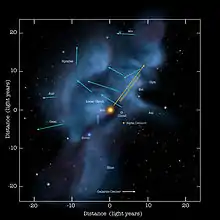![]() Diagram of the local clouds of matter that the Solar System is moving through, with arrows indicating cloud motion. | |