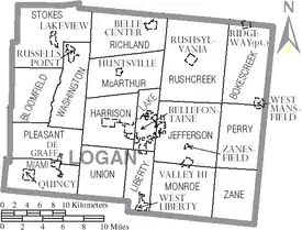 Logan County is a county located in the west central portion of the U.S. state of Ohio. As of the 2010 census, the population was 45,858.[2] The county seat is Bellefontaine.[3] The county is named for Benjamin Logan, who fought Native Americans in the area.[4]