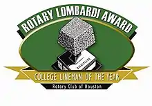 The Lombardi Award is awarded by the Lombardi Foundation annually to the best college football player, regardless of position, based on performance, as well as leadership, character, and resiliency.[1] From 1970 until 2016 the award was presented by Rotary Club of Houston specifically to a lineman or linebacker. The Lombardi Award program was created by the Rotary club of Houston in 1970 shortly after the death of famed National Football League coach Vince Lombardi.[2] The committee outlined the criteria for eligibility for the award, which remained in place until 2016: A player should be a down lineman on either offense or defense or a linebacker who lines up no further than five yards deep from the ball.[3]