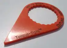 Loose wheel nut indicators are small pointed tags, usually made of fluorescent orange or yellow plastic, which are fixed to the lug nuts of the wheels of large vehicles.[1] The tag rotates with the nut, and if the nut becomes loose, the point of the tag shifts noticeably out of alignment with the other tags. If too many lug nuts are loosened, the wheel can detach from the wheel stud; loose wheel nut indicators allow identification of loose nuts before this can occur.