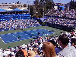 The Los Angeles Open was a former tennis tournament held in Los Angeles, United States from 1927 until 2012. It included a women's draw until 1974 when Linda Lewis won the last ladies title. Subsequently, it became a men-only event and integrated into the ATP's professional tennis circuit. The inaugural edition of the event, known as the Pacific Southwest Championships, was organized by Perry T. Jones and held at the Los Angeles Tennis Club (LATC) starting in October 1927. Bill Tilden and Kea Bouman were the first singles champions.[1] The tournament quickly became a prestigious event on the tennis calendar.[2]