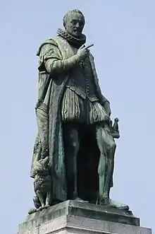 After moving to Amsterdam in 1837, Royer received many public commissions for statues of leading personalities from Dutch history, such as the statues of Rembrandt and Joost van den Vondel in Amsterdam, William the Silent in The Hague and Michiel de Ruyter in Vlissingen.[4] His monumental sculptures of Dutch national heroes gave form to the rising nationalism in the country that had recently recovered its independence after French occupation and wanted to be reminded of its glorious past.[5]