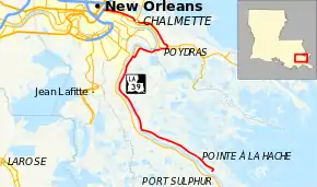 | Plaquemines | Bohemia | 0.0 | 0.0 | Parish Road 15 | Southern terminus |