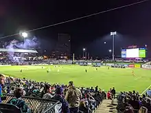 From the club's inaugural 2015 season through 2019, home games were played at Louisville Slugger Field. It is a multi-use facility that serves as the primary home of the Louisville Bats, Triple-A affiliate of the Cincinnati Reds. Though Slugger Field officially seats 13,131 for baseball games, an attendance of 8,000 was considered a soccer sellout due to limited viewing in the stadium's current baseball diamond configuration.[13] The pitcher's mound at Slugger Field was retrofitted with a retractable jack to allow a level playing surface for soccer games prior to the start of the inaugural season.[14]