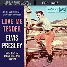 Love Me Tender is an EP by Elvis Presley, containing the four songs from the motion picture of the same name. It was released by RCA Victor in November 1956. The EP peaked at #9 on Top Pop Albums chart with sales of over 600,000,[1] as well as making it to #35 on the singles chart. It was simultaneously certified Gold and Platinum by the Recording Industry Association of America on March 27, 1992.[2]