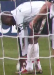 He played his first game for the Hammers in an FA Cup tie against Brighton & Hove Albion, setting up two goals and on 13 January 2007 in the Premier League against former team Fulham. On 28 April 2007, he scored his first goal for the club in an important 3–0 win against Wigan Athletic at the JJB Stadium.[21] On 29 July 2009, Boa Morte picked up a serious injury in the pre-season friendly against Tottenham Hotspur. West Ham were playing in the Barclays Asia Trophy in Beijing when Boa Morte got his studs stuck in the ground, twisted his knee and suffered an anterior cruciate ligament injury.[22] Boa Morte made his comeback from injury on 13 April 2010, playing 45 minutes in a reserve team 4–1 defeat by Wolves reserves.[23] Making an appearance in the first team for the first time since the end of 2008–09 season he opened the scoring for West Ham against Manchester City in a 1–1 draw on 9 May 2010.[24] It was his first goal for West Ham for over three years.[25] In June 2010, West Ham Chairman David Sullivan announced that Boa Morte had been offered a new deal as his contract was due to finish at the end of the 2009–10 season.[26] On 17 June 2010, Boa Morte signed a new two-year contract saying that he was looking forward to working with new West Ham manager, Avram Grant for the next two seasons.[27] In August 2011 Boa Morte's contract with West Ham was cancelled by mutual consent.[28]