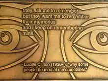 Lucille Clifton (June 27, 1936 – February 13, 2010)[1] was an American poet, writer, and educator from Buffalo, New York.[2][3][4] From 1979 to 1985 she was Poet Laureate of Maryland. Clifton was a finalist twice for the Pulitzer Prize for poetry.[5]