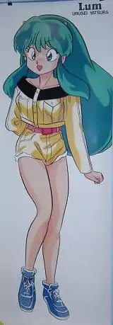 Lum Invader, known in Japan simply as Lum (Japanese: ラム, Hepburn: Ramu),[1] is a fictional character and the female protagonist of Rumiko Takahashi's manga series Urusei Yatsura.[2][3][4] She is often believed to be the main protagonist of the series due to her iconic status. However, Takahashi has stated that Ataru Moroboshi is the main character.[4] She is named Lamu in Animax's English-language dub of the series, and in the Italian and French anime dubs as well; however she is still called "Lum" (pronounced with a long "u" per Spanish linguistic customs) in the Spanish anime dub. Her name is thought to come from popular 1970s swimsuit model Agnes Lum, as well as Rumiko Takahashi's nickname of "Rum" or "Lum" (from the interchangeable sound of the Rs and Ls in Japanese).[5]