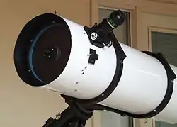 The Houghton telescope or Lurie–Houghton telescope is a catadioptric telescope. Houghton's original design was patented[1] in 1944. Instead of the fairly hard to make Schmidt and heavy meniscus (Maksutov) corrector lenses, the corrector for the Houghton is relatively easy to make. It consists of two lenses: a positive and a negative, set at the front of the telescope which fixes the telescope's aperture. All lens and mirror surfaces are spheroidal, which eases construction. These lenses are relatively thin, though not as thin as the Schmidt corrector. With a good anti-reflective coating, light loss and "ghost" reflections are minimal.