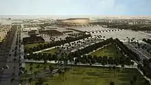 Plans for the development of Lusail City were first announced in 2005.[9] After a cabinet resolution was passed in 2002, Lusail along with its suburbs of Al Kharayej and Jabal Thuaileb became the first areas of Qatar where foreigners could own real estate.[10] In December 2013, Qatari Diar announced that more than 80% of the plots in Lusail have been purchased.[11] It was stated in April 2018 that over 80% of the city's infrastructure projects were completed.[3]