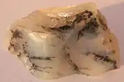 Greasy minerals resemble fat or grease. A greasy lustre often occurs in minerals containing a great abundance of microscopic inclusions, with examples including opal and cordierite, jadeite.[2] Many minerals with a greasy lustre also feel greasy to the touch.[5]