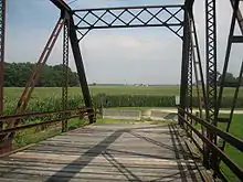 The Lyndon Bridge is a metal Parker Pratt through truss bridge in the village of Lyndon, Whiteside County, Illinois, United States. The Lyndon Bridge was designed by engineer R.S. Riser and completed in 1894 for around $20,000. Whiteside County maintained the bridge from its construction until it was closed to all traffic in 1980. In 1995, as the county was about to demolish the bridge, a group of citizens worked together and saved it from demolition. The bridge was listed on the U.S. National Register of Historic Places in 2003.
