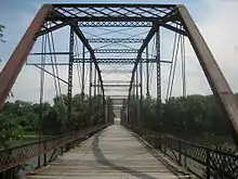 In 1876 the village of Lyndon first approached Whiteside County officials about the construction of a bridge over the Rock River in the village. That petition was denied and the county was not approached about a Lyndon bridge again until 1891, when the county agreed the village needed a bridge. The county appointed a bridge committee and the project began.[2] The bridge committee first met on June 30, 1891 on the site of Lyndon Bridge. At another meeting, on February 18, 1892, the committee decided to seek bids for the construction of the bridge. At the same meeting the committee selected R.S. Riser, an engineer, to plan and design the bridge for a cost of no more than $50; Riser was paid the full $50.[2][3] The committee received eight bids at another meeting, held on March 10, 1892.[2] The bids ranged from the lowest at $16,400 to the highest at $19,127. The bridge committee ultimately went with the lowest bid from Keefers & Wyncoop.[3]