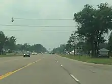 M-72 starts its trans-peninsular journey at M-22 in the community of Empire on the shores of Lake Michigan in the Sleeping Bear Dunes National Lakeshore. From there it runs easterly uphill through mixed farmland and forest to cross the base of the Leelanau Peninsula. As the highway approaches the city of Traverse City, the roadway runs downhill and weaves back and forth across the Leelanau – Grand Traverse county line. M-72 merges with M-22 to run concurrently in the section of Traverse City in Leelanau County and immediately cross the county line into Grand Traverse County. The two highways run along Grandview Parkway, a four-lane boulevard on the shore of the West Arm of Grand Traverse Bay. At the intersection of Grandview Parkway and Division Street, M-22 ends. US 31/M-37 run north along Division Street and turn east onto Grandview Parkway to join M-72. These three highways stay merged in a triple concurrency along the length of Grandview Parkway and across the Boardman River along the bay, bypassing downtown. They then follow Front Street until reaching Garfield Avenue east of downtown. At Garfield, M-37 turns north to run up the Old Mission Peninsula which separates the west and east arms of Grand Traverse Bay. US 31/M-72 continues east along the shores of the East Arm of Grand Traverse Bay and northward to a junction in Acme. M-72 turns east to cross rural eastern Grand Traverse County along rolling hills through the communities of Williamsburg and Barker Creek.[3][4]