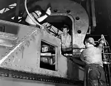 There were also two .30-06 Browning M1919A4 machine guns mounted in the hull, fixed in traverse but adjustable in elevation, which were controlled by the driver. These were, due to coordination issues, removed, though they would be seen on early Sherman tanks.[9]