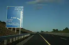 From 24 September 2008, motorway regulations were applied from Kinnegad to the eastern end of the Athlone bypass.[1] The Kinnegad-Athlone scheme was signed as a motorway (and numbered "M6"). Its road markings were already appropriate to a motorway prior to the change in designation coming into effect; however, motorway regulations were not in force and the speed limit was 100 km/h until 24 September of that year.
