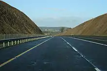 Construction of this 16 km scheme started in December 2007. The section opened to traffic on 25 May 2009, some nine months ahead of the original target completion date.[19] Like the Cashel-Cullahill project, the Fermoy-Mitchelstown scheme was redesignated a motorway during its construction, having originally been envisaged as a HQDC.[20] It was built by Roadbridge Ltd. at a cost of €174 million.[19][21]