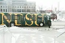 Seven MATBUS fixed routes serve the North Dakota State University campus during the academic year through an agreement between the university and the City of Fargo.[10] In January 2018, MATBUS replaced its late-night route on NDSU's campus with an on-demand route called TapRide. The system allows students at the university to request a ride via a smartphone app to and from any location on campus or nearby neighborhoods.[11] In August 2019, a second TapRide route was launched to serve Fargo's industrial park area.[12]