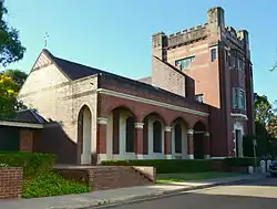 ![]() Schofield Hall and the Tower Wing. The hall, to the left, was designed by Harry Kent and the memorial stone was laid by Mrs Schofield on 16 November 1891. The tower, to the right, was designed by Alfred Newman | |