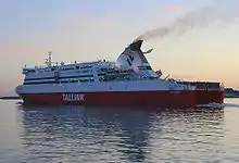 In March 2006 Superfast sold their Baltic Sea operations to Tallink for €310 million.[8] Following this Superfast IX and her sisters were re-registered to Paldiski in Estonia, and the route changed to Hanko—Paldiski—Rostock from April 2006 onwards.[1] Calling at Paldiski proved problematic as Estonia was not a member of the Schengen Treaty, and in June of the same year the route reverted to Hanko—Rostock.[1] According to the agreement Tallink could keep the Superfast marketing name until the end of 2007, but the ships' hulls soon sported the texts "Superfast operated by Tallink". From the beginning on the year 2007 the ship's route changed to Tallinn—Helsinki—Rostock, with the West Harbour as the port in Helsinki.[9] As the same time all remaining Superfast logos and hull markings were removed.[1] At the time it was reported that coinciding with the move to sail from Helsinki the Superfast ships would be transferred to the fleet of Tallink's subsidiary Silja Line, but this did not came to pass.[10]