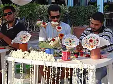 A machmoum (Arabic: مشموم) is a small flower bouquet or necklace made of jasmine or fell, specific to Tunisia. It is sold during the summer in the afternoon or in the evening.