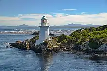 - Bonnet Island - in Kelly Channel at entrance to harbour (42° 13′ S, 145° 14′ E)[8]