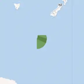 Map showing the Macquarie Island Marine Park. The shaded area is a Sanctuary Zone ('no take' zone).[1] | |