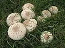 The European species Macrolepiota konradii, similar in appearance to M. clelandii,[10] has a smaller range of spore dimensions, typically 13–17 by 8–10 µm.[11] M. subcitrophylla, described from China in 2012, is genetically close to M. clelandii. Unlike the latter species, it has yellow gills.[12] M. procera is a larger with broad caps up to 12 in (30 cm) in diameter, and the stipe surface is covered with brownish zigzag bands or scaly girdles on a whitish background. Its spores are smaller than those of M. konradii, measuring on average 13.8–15.7 µm.[13] It is now known to occur only in Europe.[14]