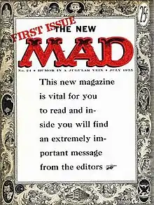 Mad (stylized as MAD) is an American humor magazine founded in 1952 by editor Harvey Kurtzman and publisher William Gaines,[3] launched as a comic book before it became a magazine. It was widely imitated and influential, affecting satirical media, as well as the cultural landscape of the 20th century, with editor Al Feldstein increasing readership to more than two million during its 1973–74 circulation peak.[4]