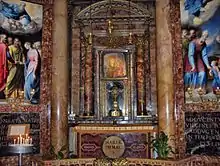 The icon is located between two altars, the first dedicated to Ignatius of Loyola, the second, the main altar of the Church, dedicated to the Holy Name of Jesus.[4]