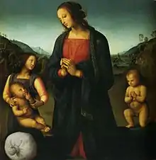 Madonna del Sacco (literally Madonna of the Bag) is an oil on panel painting by Perugino, dating to around 1495-1500. It shows the Madonna and Child with the infant John the Baptist and an angel. It is now in the Galleria Palatina in Florence.