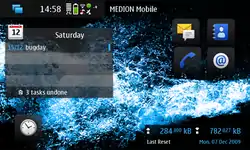 Up to Maemo 4 (AKA OS2008), the default screen is the "Home" screen — the central point from which all applications and settings are accessed. The Home Screen is divided into the following areas:
